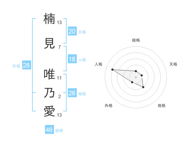 楠見 唯乃愛さんを姓名の画数から五運を鑑定