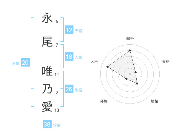 永尾 唯乃愛さんの総格は38画の4点!
