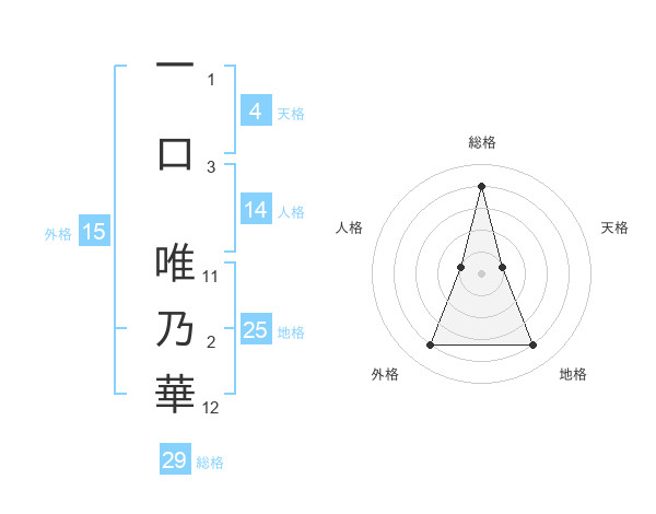 一口 唯乃華さんを姓名の画数から五運を鑑定