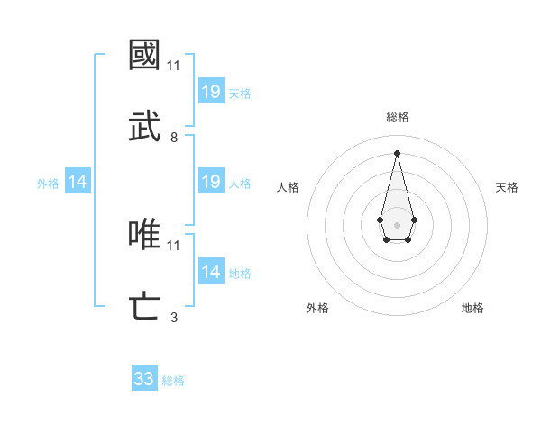 國武 唯亡さんを姓名の画数から五運を鑑定