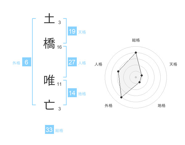 土橋 唯亡さんを姓名の画数から五運を鑑定