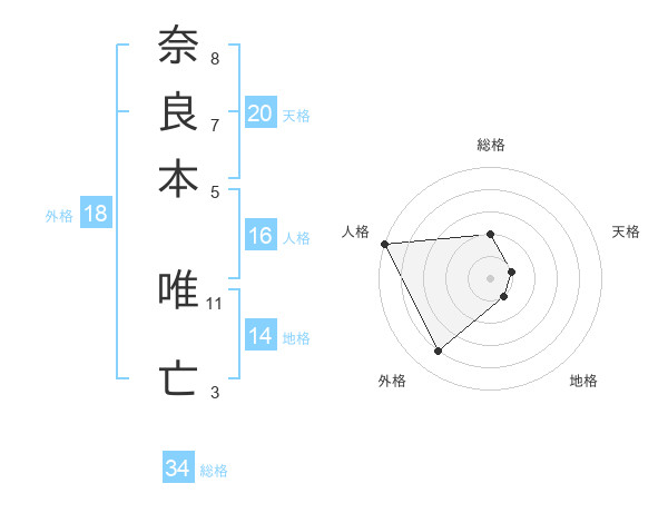 奈良本 唯亡さんを姓名の画数から五運を鑑定