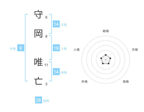 守岡 唯亡さんを姓名の画数から五運を鑑定