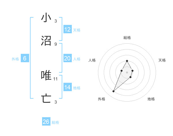 小沼 唯亡さんを姓名の画数から五運を鑑定