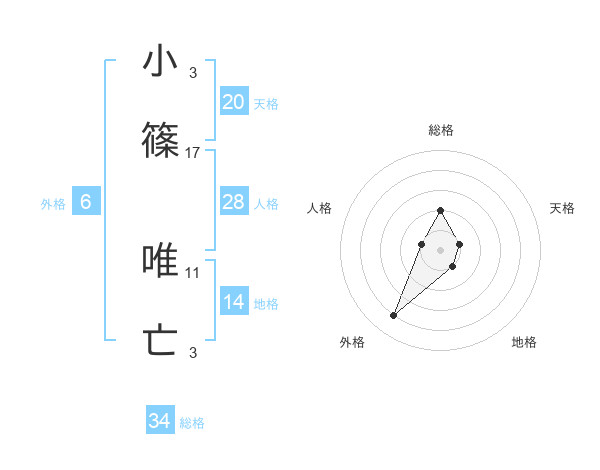 小篠 唯亡さんの天格は20画の1点!