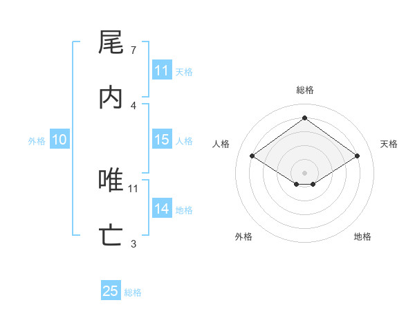 尾内 唯亡さんの総格は25画の4点!