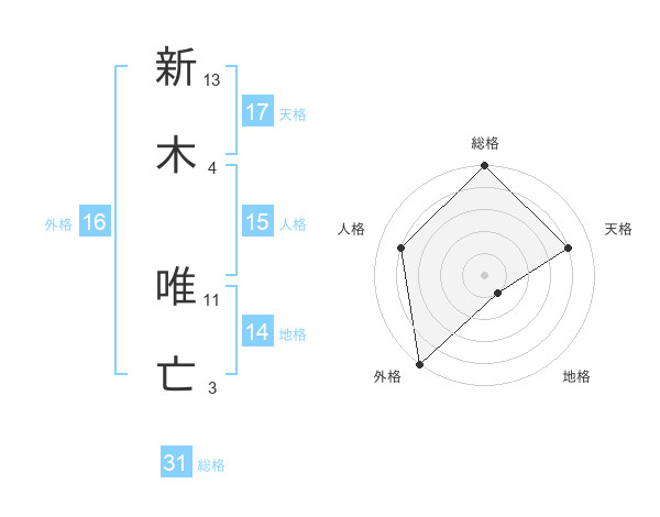 新木 唯亡さんを姓名の画数から五運を鑑定