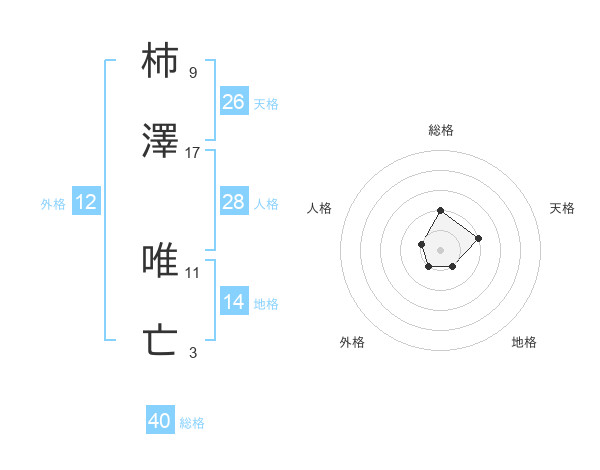 柿澤 唯亡さんを姓名の画数から五運を鑑定