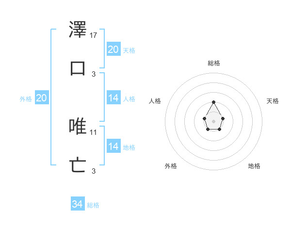 澤口 唯亡さんを姓名の画数から五運を鑑定