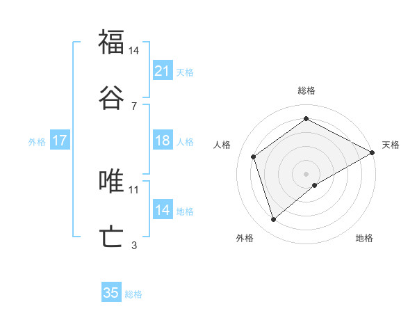 福谷 唯亡さんの総格は35画の4点!