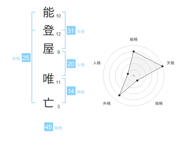 能登屋 唯亡さんを姓名の画数から五運を鑑定