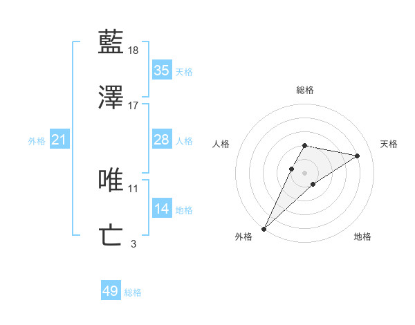 藍澤 唯亡さんの天格は35画の4点!