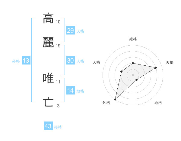高麗 唯亡さんの総格は43画の2点!