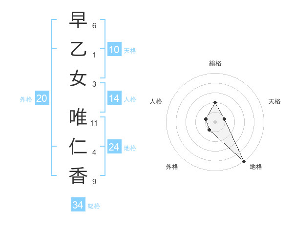 早乙女 唯仁香さんの総格は34画の2点!
