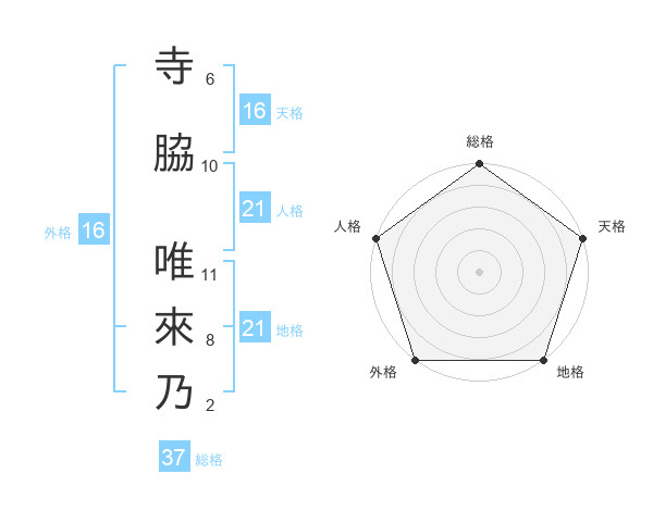 寺脇 唯來乃さんの人格は21画の5点!
