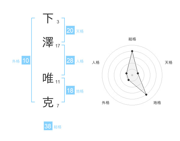 下澤 唯克さんの総格は38画の4点!