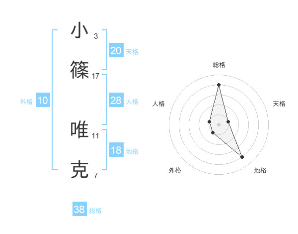 小篠 唯克さんの天格は20画の1点!