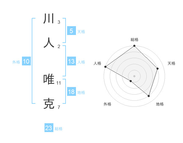 川人 唯克さんの総格は23画の5点!