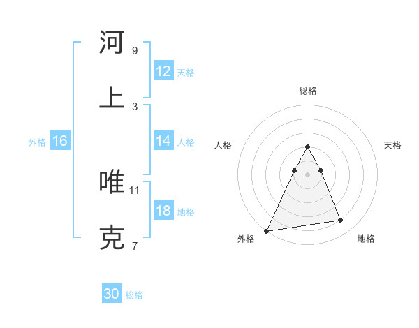 河上 唯克さんの総格は30画の2点!