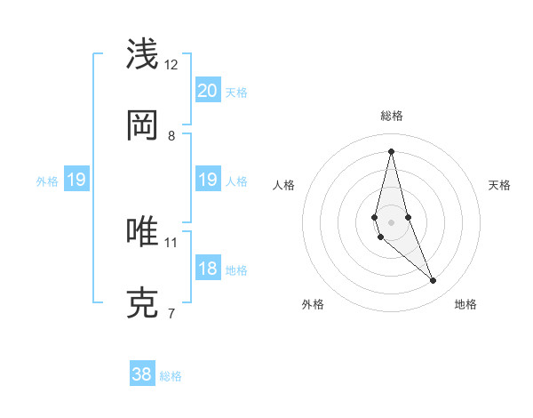 浅岡 唯克さんの天格は20画の1点!