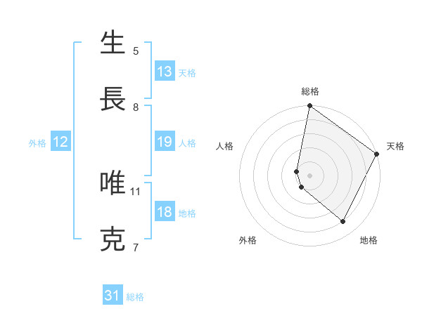 生長 唯克さんの総格は31画の5点!