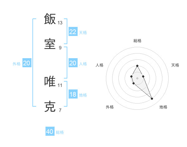 飯室 唯克さんの天格は22画の1点!