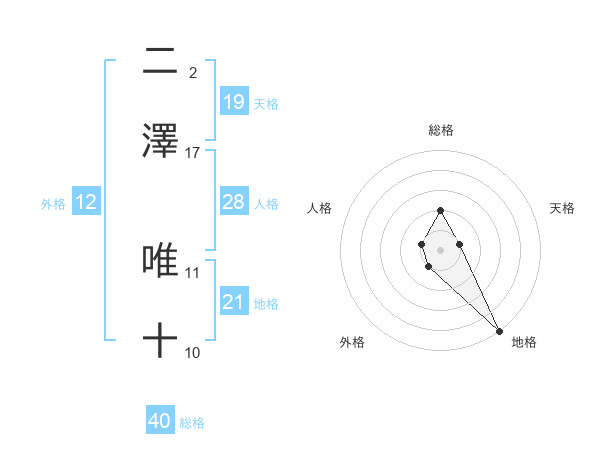 二澤 唯十さんを姓名の画数から五運を鑑定