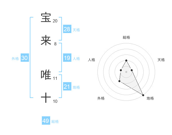 宝来 唯十さんの総格は49画の2点!