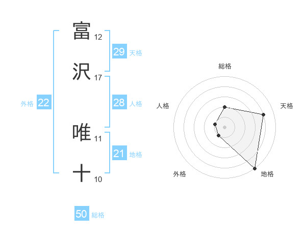 富沢 唯十さんの総格は50画の2点!
