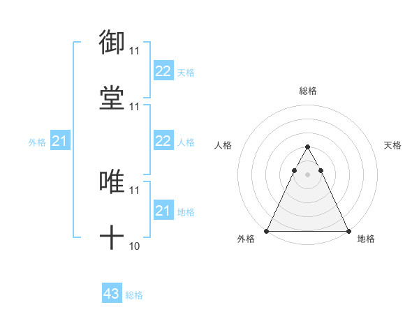 御堂 唯十さんを姓名の画数から五運を鑑定