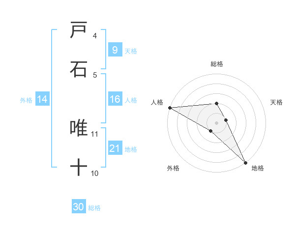 戸石 唯十さんの総格は30画の2点!
