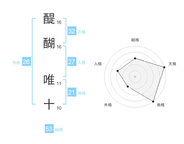 醍醐 唯十さんを姓名の画数から五運を鑑定