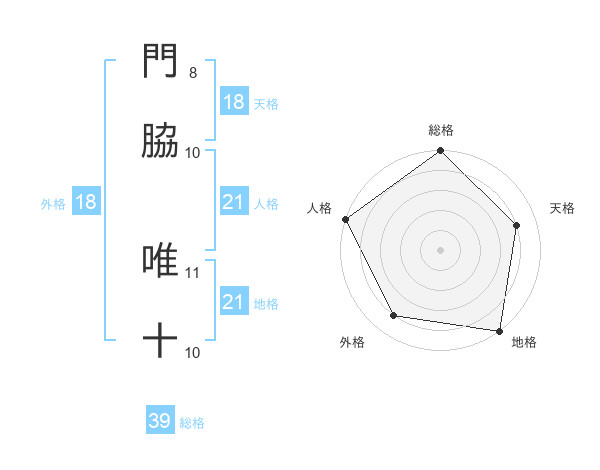 門脇 唯十さんを姓名の画数から五運を鑑定