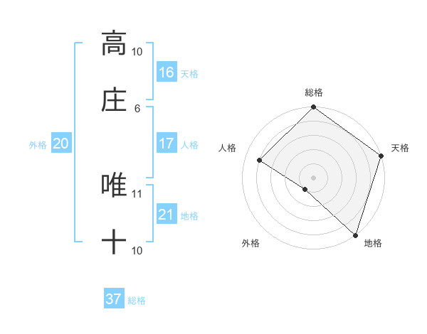 高庄 唯十さんを姓名の画数から五運を鑑定