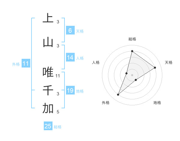 上山 唯千加さんを姓名の画数から五運を鑑定