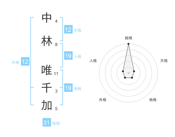 中林 唯千加さんを姓名の画数から五運を鑑定