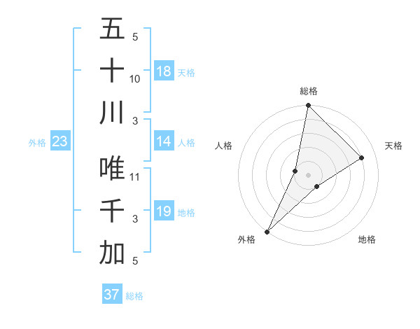 五十川 唯千加さんの外格は23画の5点!