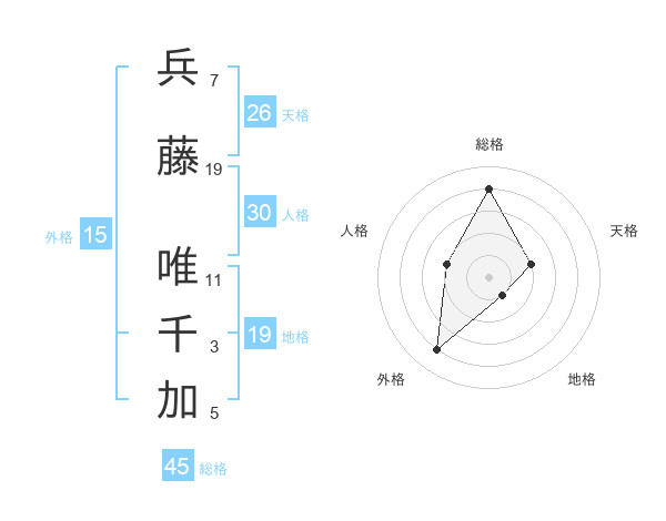 兵藤 唯千加さんの総格は45画の4点!