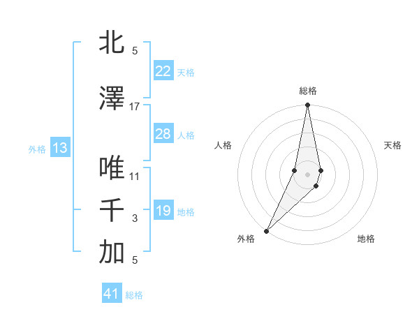 北澤 唯千加さんの外格は13画の5点!
