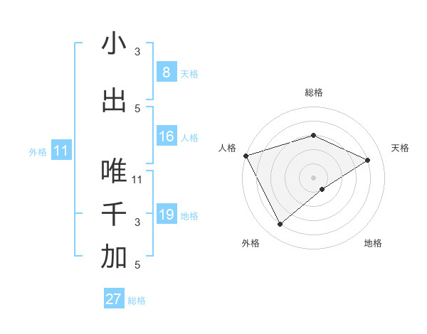 小出 唯千加さんの天格は8画の4点!