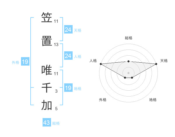 笠置 唯千加さんの天格は24画の5点!