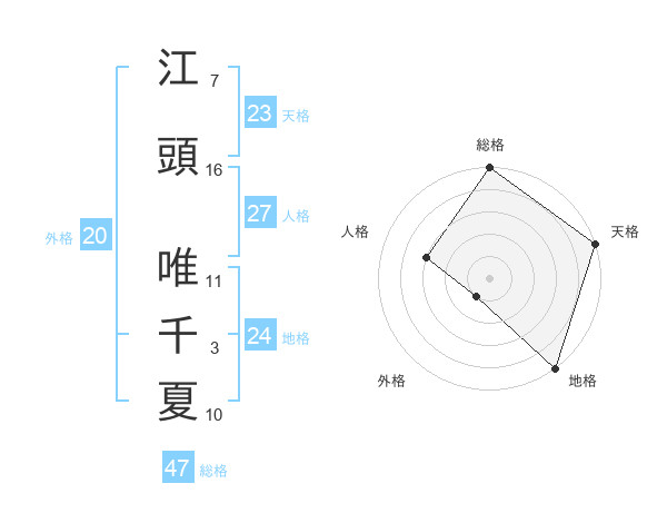 江頭 唯千夏さんを姓名の画数から五運を鑑定