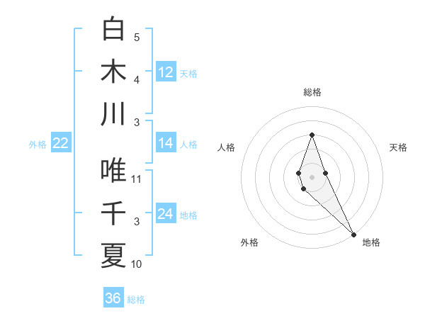 白木川 唯千夏さんの外格は22画の1点!