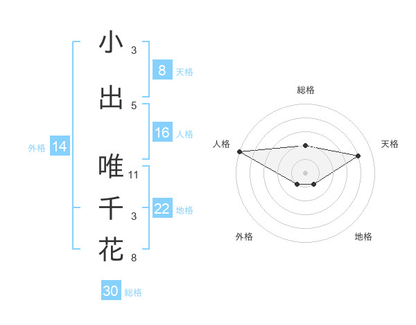 小出 唯千花さんの天格は8画の4点!