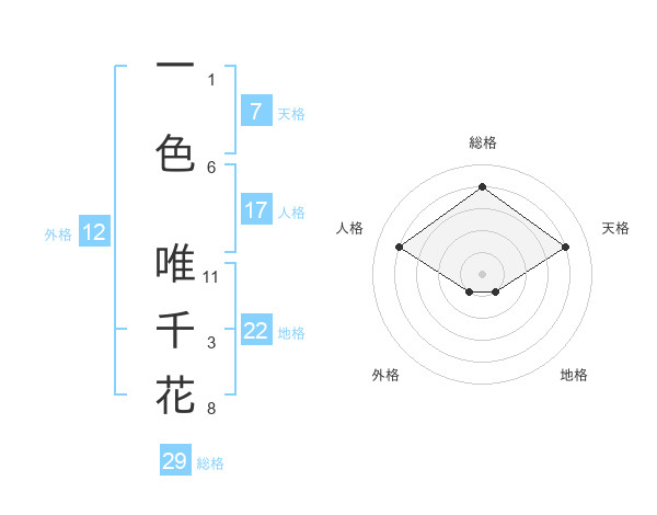 一色 唯千花さんを姓名の画数から五運を鑑定