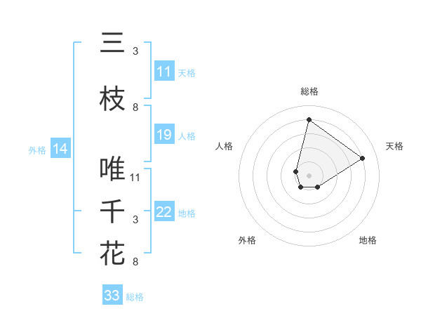 三枝 唯千花さんの総格は33画の4点