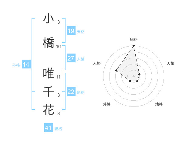 小橋 唯千花さんを姓名の画数から五運を鑑定
