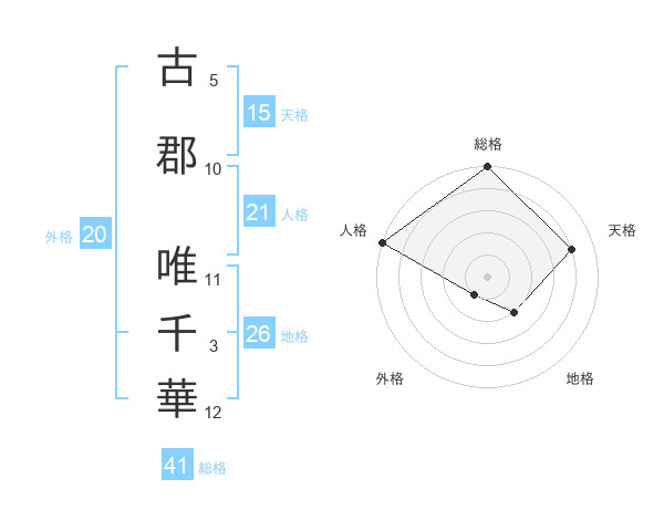 古郡 唯千華さんを姓名の画数から五運を鑑定