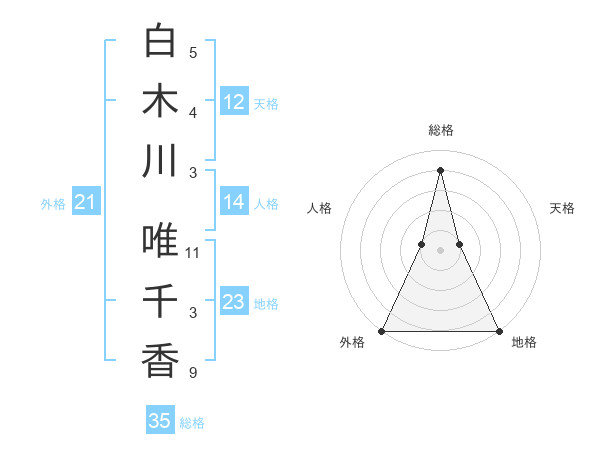 白木川 唯千香さんを姓名の画数から五運を鑑定