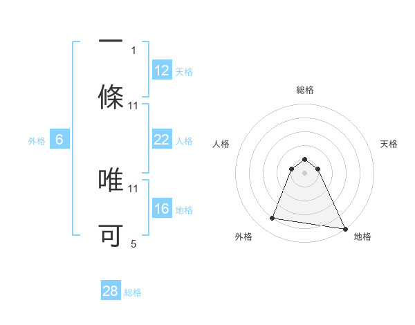 一條 唯可さんの天格は12画の1点!